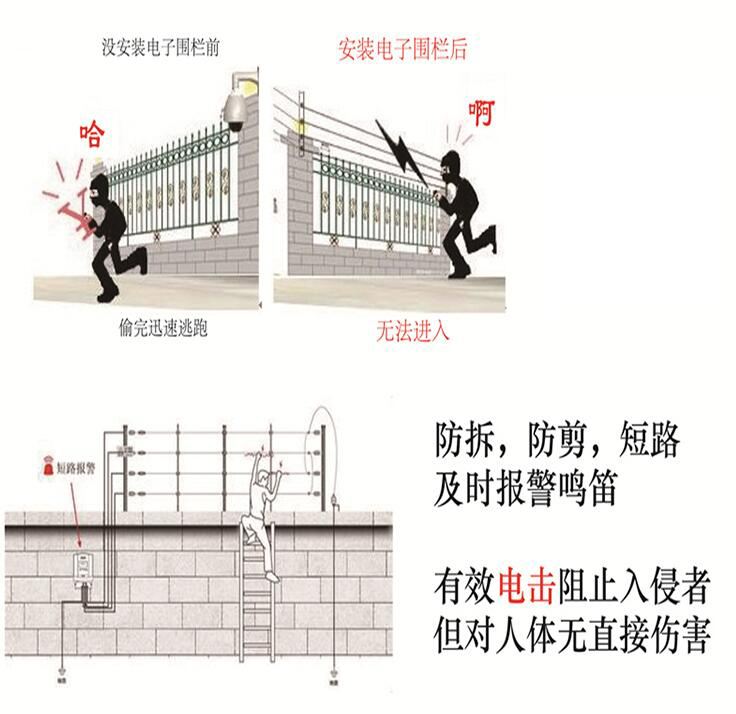 電子圍欄新的安防構(gòu)思,是以阻擋為主,報(bào)警為輔。以阻擋、報(bào)警、監(jiān)控為一體,系統(tǒng)對(duì)入侵者給予瞬間脈沖電擊。具有極強(qiáng)的威懾作用。防止事件的發(fā)生,減少事件后處理工作量,減少社會(huì)犯罪率。電子圍欄可同警燈、警鈴、攝像等聯(lián)合使用,可遠(yuǎn)程監(jiān)控,可形成智能化。