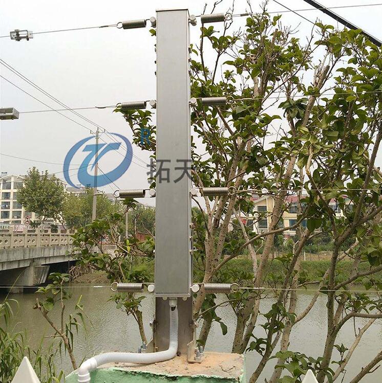 張力式電子線攬由普通的金屬絲線及張力探測器構成。這個系統(tǒng)通過張力探測器連接多種類型的有規(guī)則的絲線,每個張力探測器把任何企圖攀爬,切割線攬線的人力、機械力(發(fā)生的力變)轉換成電子信號并傳送到控制中心,以達到報警的目的。