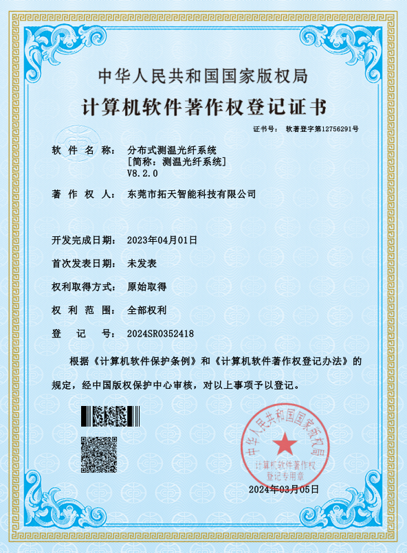 分布式測(cè)溫光纖系統(tǒng)國(guó)家版權(quán)局計(jì)算機(jī)軟件著作